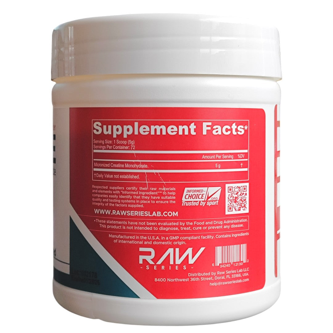 Monohidrato de creatina de máxima pureza, formulado para optimizar el rendimiento muscular y la fuerza. Cada porción de 5 gramos proporciona creatina micronizada de grado farmacéutico, diseñada para mejorar la síntesis proteica y aumentar la capacidad de trabajo en entrenamientos intensos. Ideal para atletas y personas comprometidas con el desarrollo muscular. Sin aditivos ni rellenos. Llevas 720 gramos y 144 gramos en total.