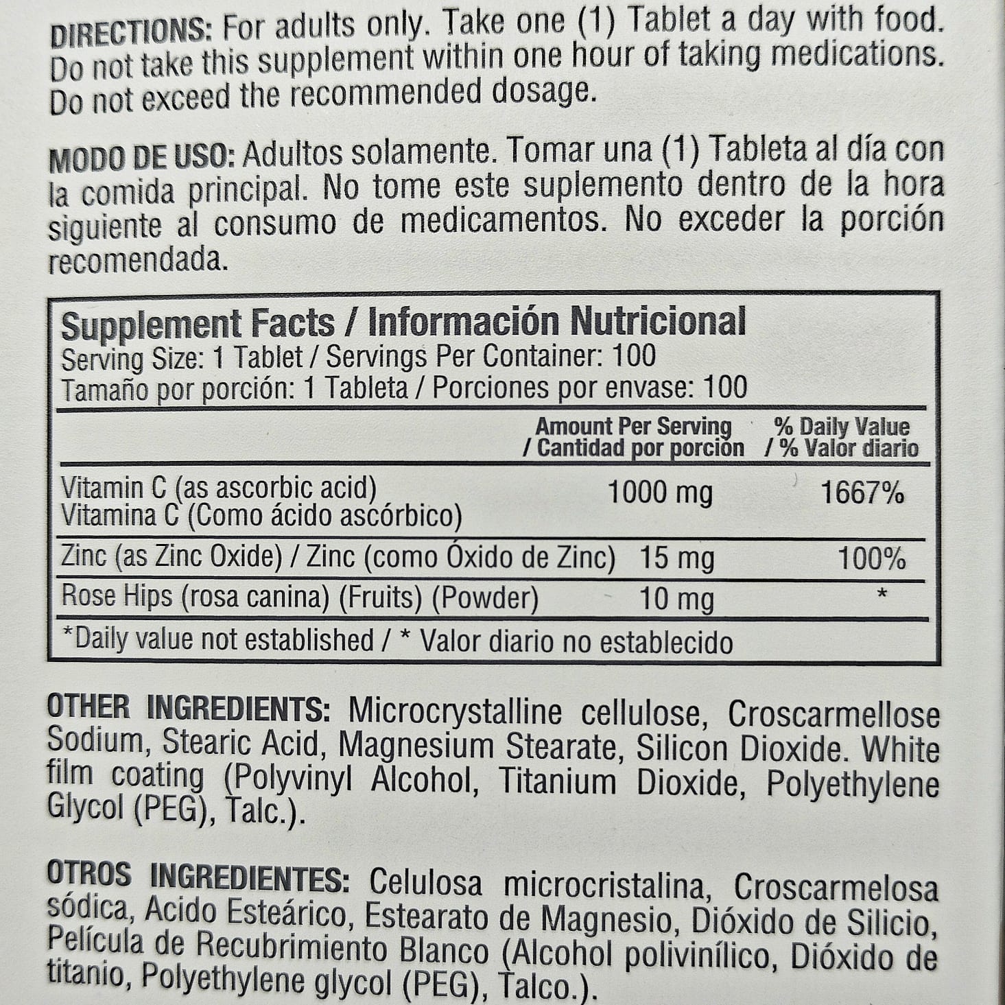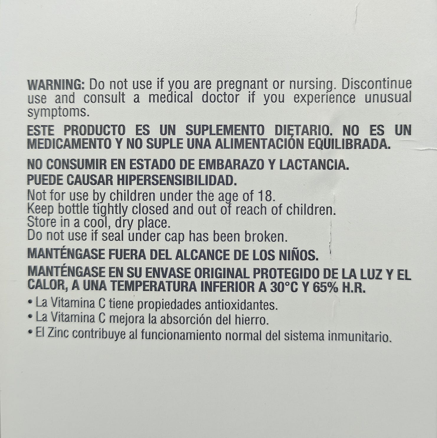 • Suplemento vitáminico adicionado con zinc