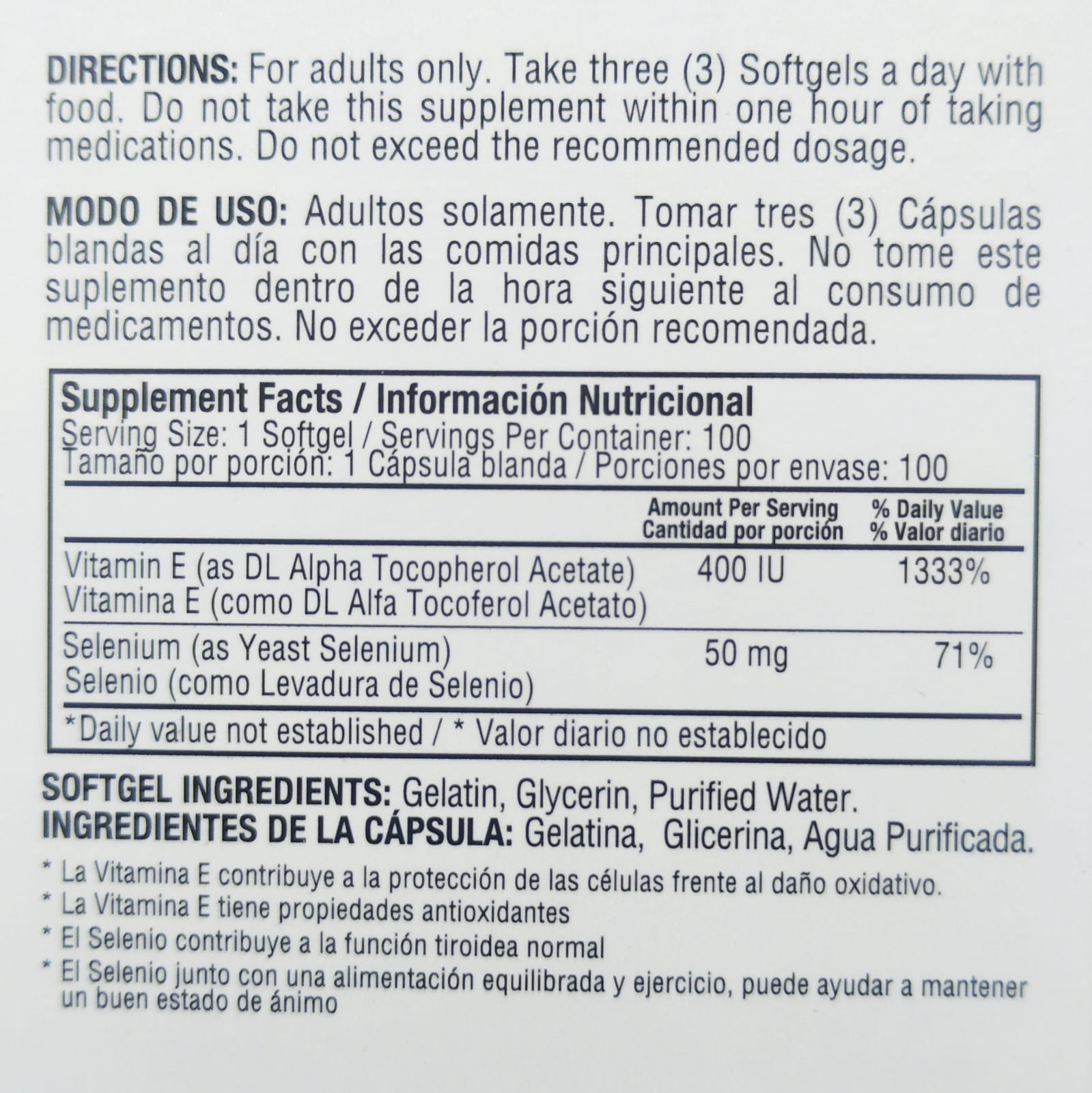 100 Cápsulas de VItamina E + Selenio | Healthy America